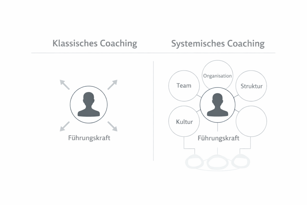 Der vielleicht wichtigste Unterschied zwischen klassischem Coaching und systemischem Leadership Coaching liegt im Blickwinkel. Im klassischen Coaching steht häufig die Frage im Mittelpunkt: „Wie kann ich mich verändern?“